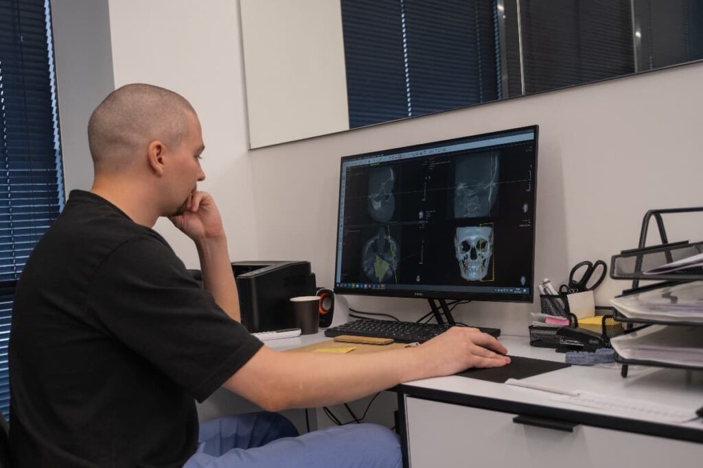Наш центр работает по концепции Рудольфа Славичека — это значит, что мы проводим цифровые исследования — анализ бруксизма, оценку эффективности жевания и даже привычки. Наш центр оснащен современным оборудованием и материалами, а врачи прошли сертификацию в ведущих клиниках.